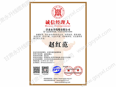 中国诚信供应商证书