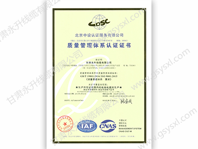 质量管理体系认证证书