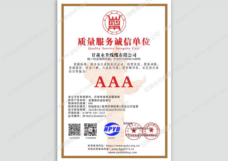 AAA级质量服务诚信单位